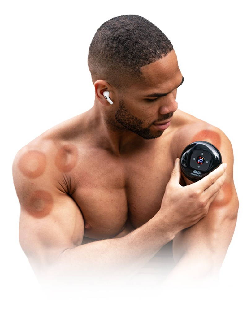 REVO™ brings professional-level cupping therapy to the comfort of your home. We’ve combined our dynamic-suction technology, therapeutic heat, adjustable red light therapy, and vibration into one easy-to-use device for the most optimal localized pain relief and recovery experience.