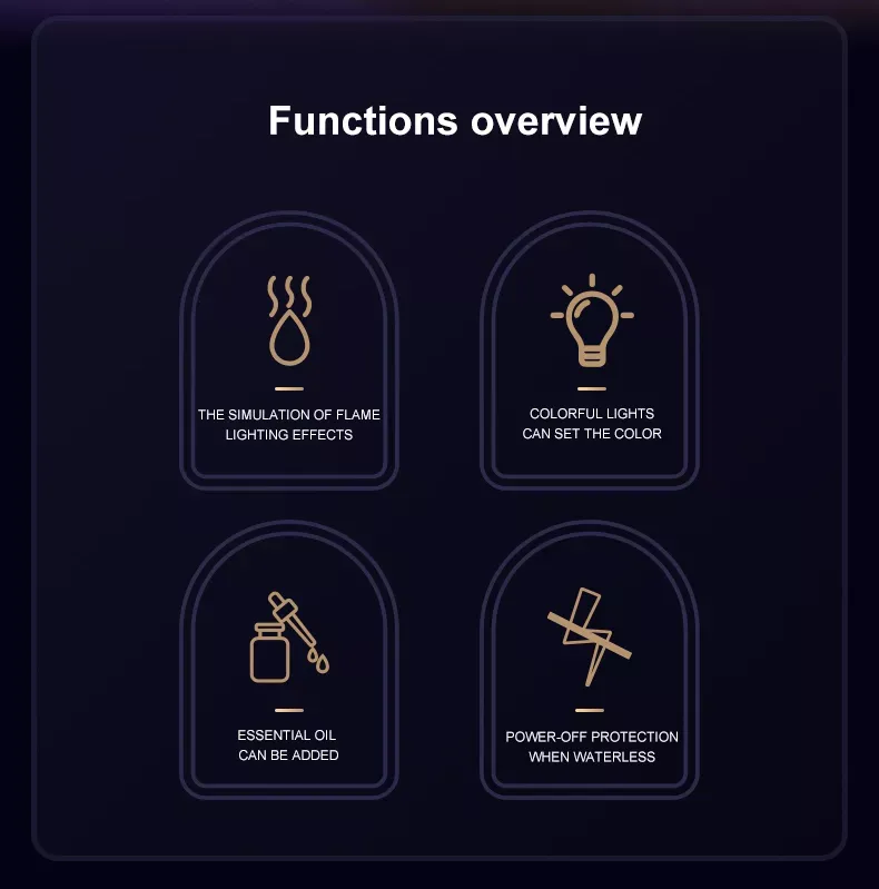 The standout feature of the RGB Flame Aroma Diffuser is its mesmerizing 3D flame effect. The realistic flame simulation creates a warm and inviting atmosphere, mimicking the soothing glow of a candle without the safety concerns. It’s perfect for setting the mood during a cozy evening or adding a touch of elegance to your decor.