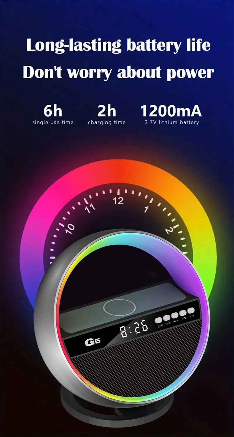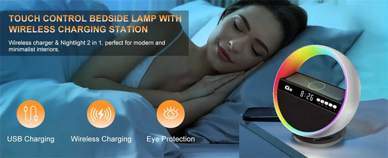 Transform your space into a vibrant and multifunctional environment with the Multifunction RGB Night Light Wireless Charger Bluetooth-Compatible Speaker. This innovative device combines a night light, wireless charger, and Bluetooth speaker into one stylish unit, making it the perfect addition to your bedroom, living room, or office. Whether you’re winding down after a long day or hosting a gathering with friends, this multifunctional gadget is designed to enhance your experience.