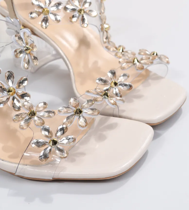 Rhinestone Floral Transparent Sandals – Sparkle in Every Step
