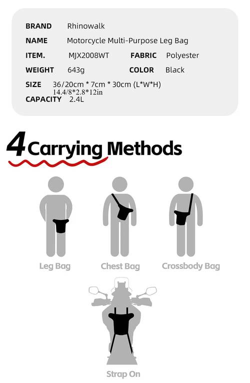 The Rhinowalk Motorcycle Leg Bag 2.4L offers a practical and secure way to carry your essentials while riding. Its compact design, anti-lost key clip, multi-compartment organization, and durable polyester construction make it an essential accessory for motorcycle enthusiasts. Keep your gear organized, secure, and easily accessible with this heavy-duty leg bag on your next ride.