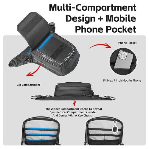 Organized & Accessible: The multi-compartment design keeps your gear organized, while the adjustable strap ensures a