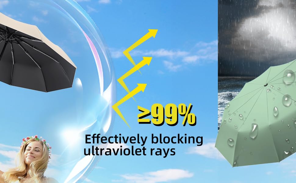Compact, durable, and stylish. It fits perfectly in my bag, and the UV protection is a bonus for sunny days.