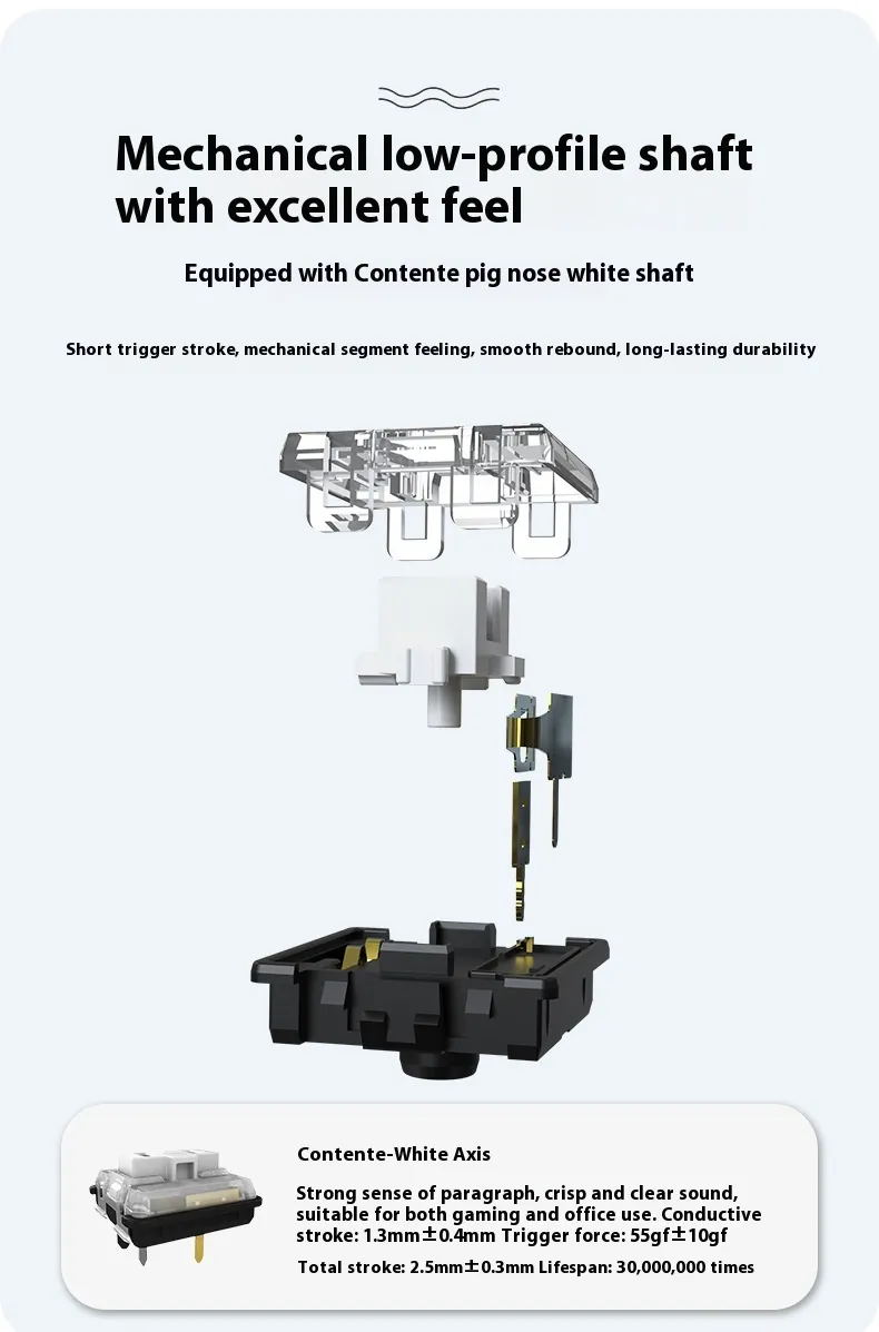 Low Axis Mechanical Switches: Equipped with low axis mechanical switches, this keyboard provides fast,