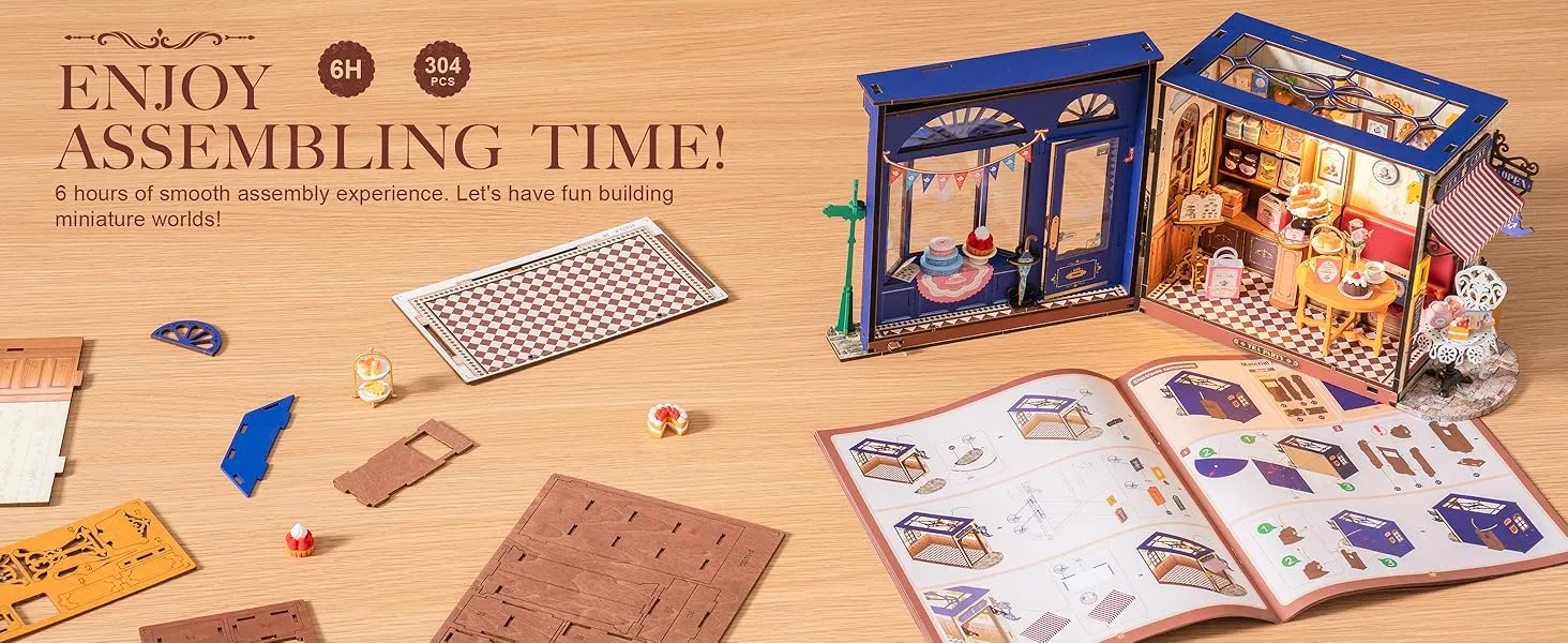 This DIY kit is the perfect way to indulge your creativity while building a beautiful and functional piece of art. Whether you are a DIY enthusiast, a model-building expert, or simply looking for a relaxing, hands-on project, the ROBOTIME DIY Miniature Dollhouse Kit – Tea Room will provide hours of enjoyable and rewarding work. The added LED lights give your tea room a warm glow, making it a cozy, inviting space in your home once completed.