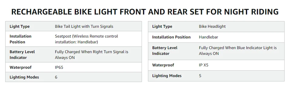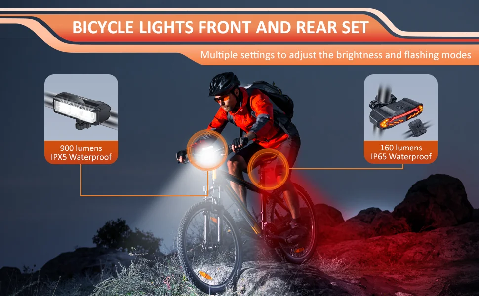 Emphasizing sustainability, both the front and rear lights are equipped with rechargeable lithium-ion batteries. This eco-friendly choice reduces the need for disposable batteries, aligning with environmentally conscious practices. The included USB charging cable facilitates easy recharging, ensuring your lights are always ready for your next ride.