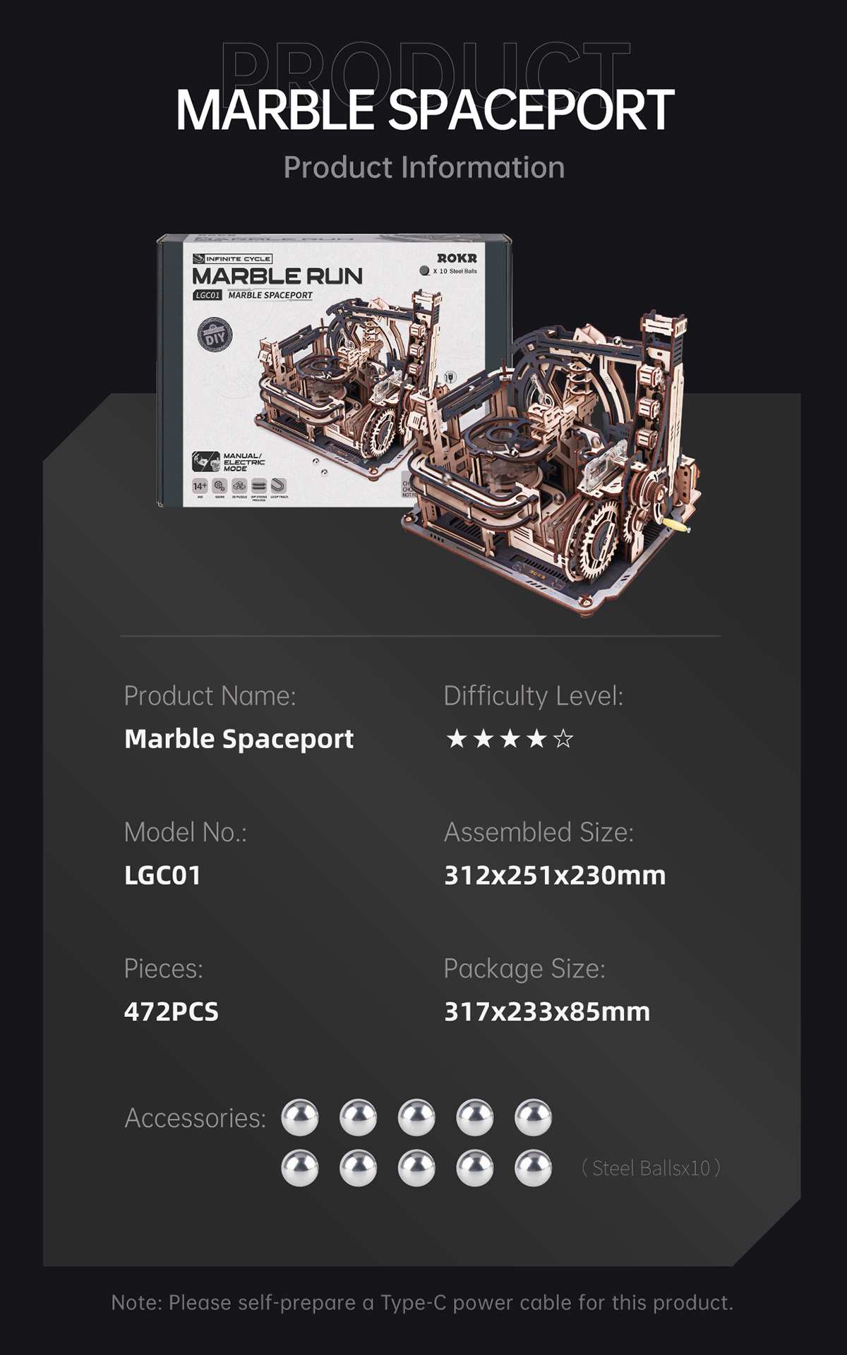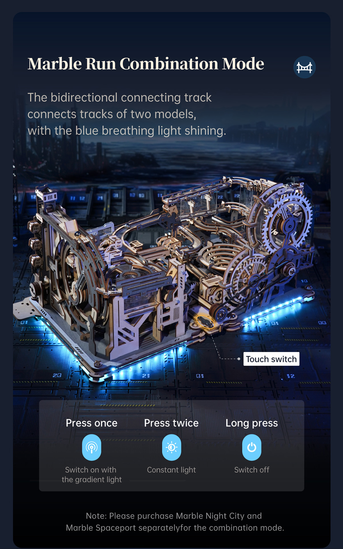 The ROKR Marble Spaceport Marble Run is designed for ages 14 and up, making it a great project for teens and adults alike. Whether you're looking for a challenging puzzle, a decorative piece, or an educational tool, the Marble Spaceport offers something for everyone. Plus, if you’re looking to expand your marble run setup, the model is compatible with the ROKR Marble Night City (LGA01), allowing you to link the two together for an even more dynamic and extended marble journey.
