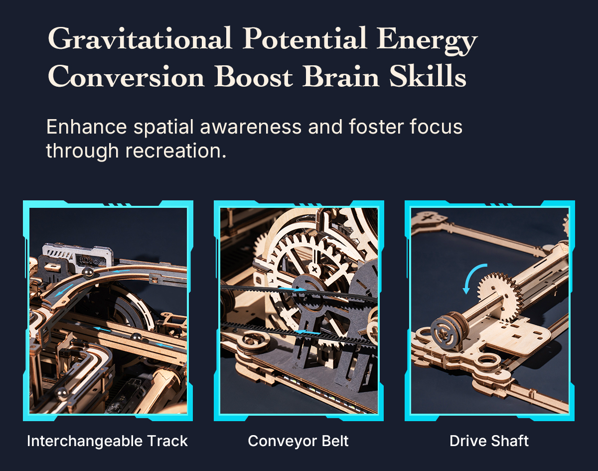 The ROKR Marble Spaceport Marble Run 3D Wooden Puzzle LGC01 stands out due to its blend of hands-on construction and kinetic output — something that many static puzzles lack. Rather than finishing with a model that simply sits on a shelf, builders experience the satisfaction of watching marbles navigate through the course they created, bringing playfulness to completed craftsmanship.