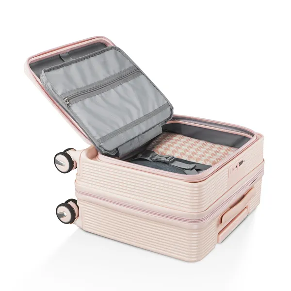 Smooth-Rolling Wheels: Equipped with four spinner wheels, the carry-on offers 360-degree mobility, making it easy to