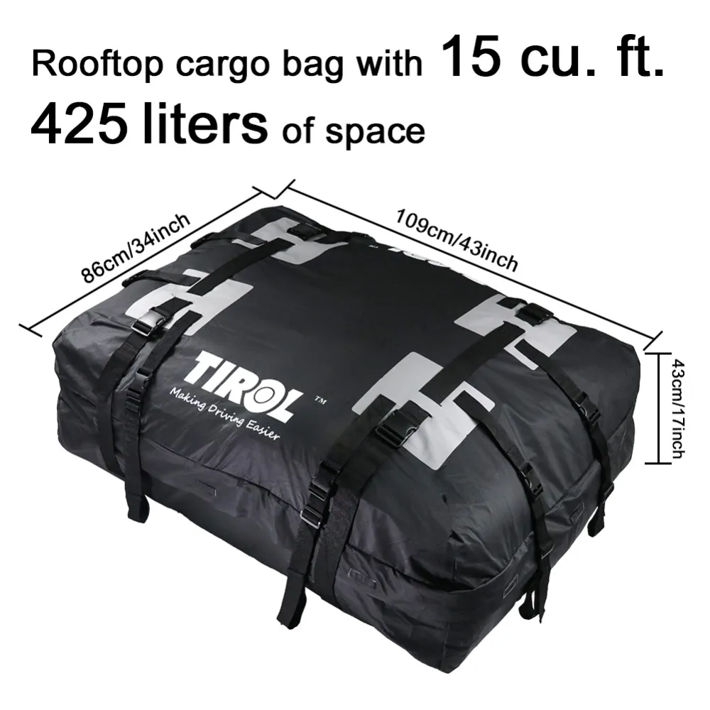 Designed to be compatible with most vehicles, the roof luggage bag can be easily attached to your car’s roof rack or used with straps if no