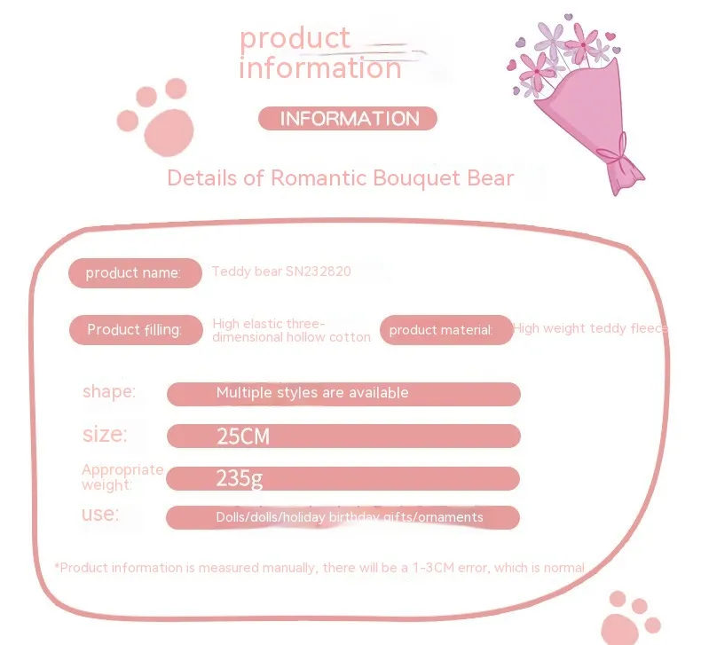 The Rose Bear Doll is a handcrafted masterpiece made from delicate foam roses that symbolizes eternal love and care. This exquisite gift is perfect for Valentine’s Day, anniversaries, birthdays, or any special moment where you want to express heartfelt emotions. Its unique and adorable design makes it a cherished keepsake for anyone who receives it.