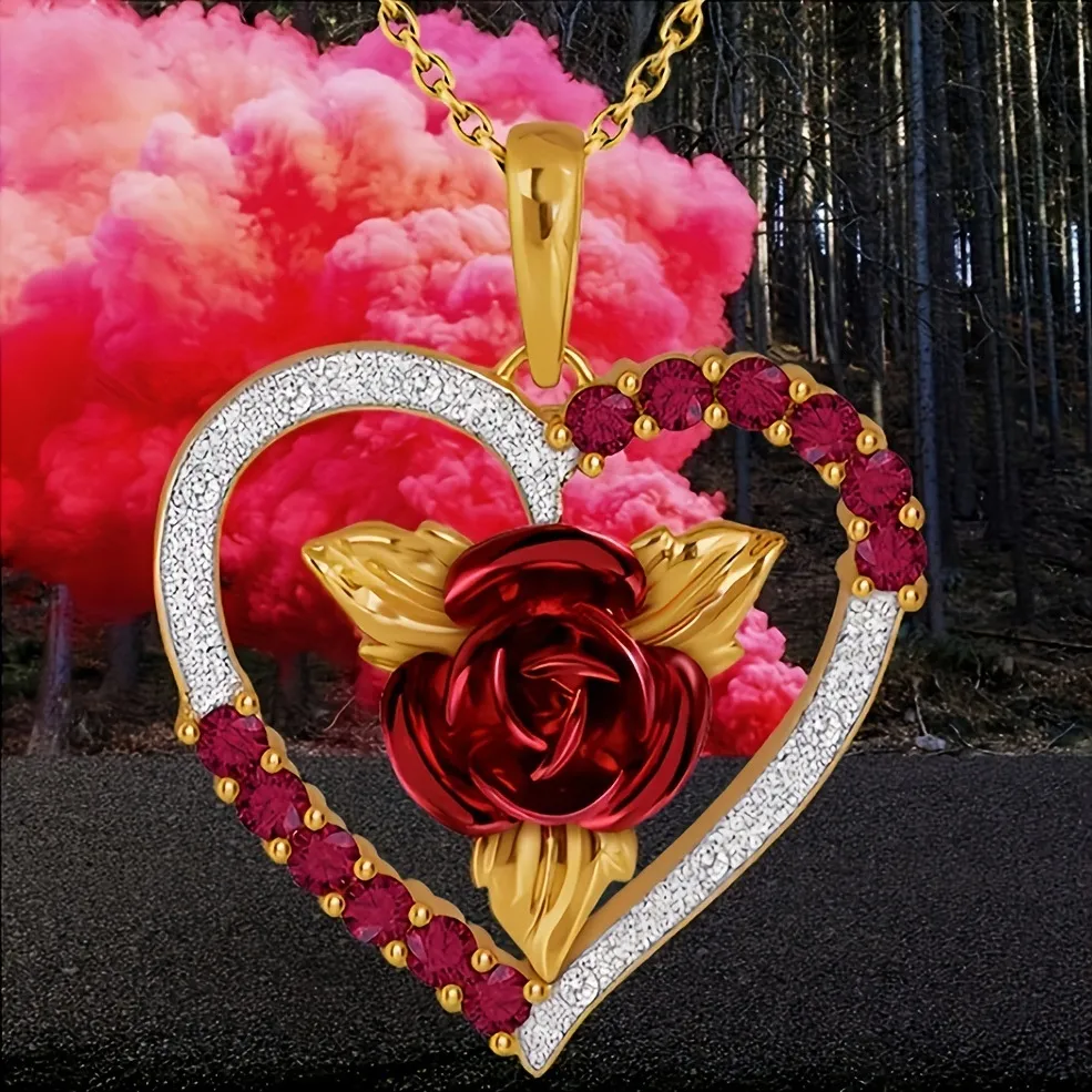 Rose Diamond Peach Heart Pendant Gift