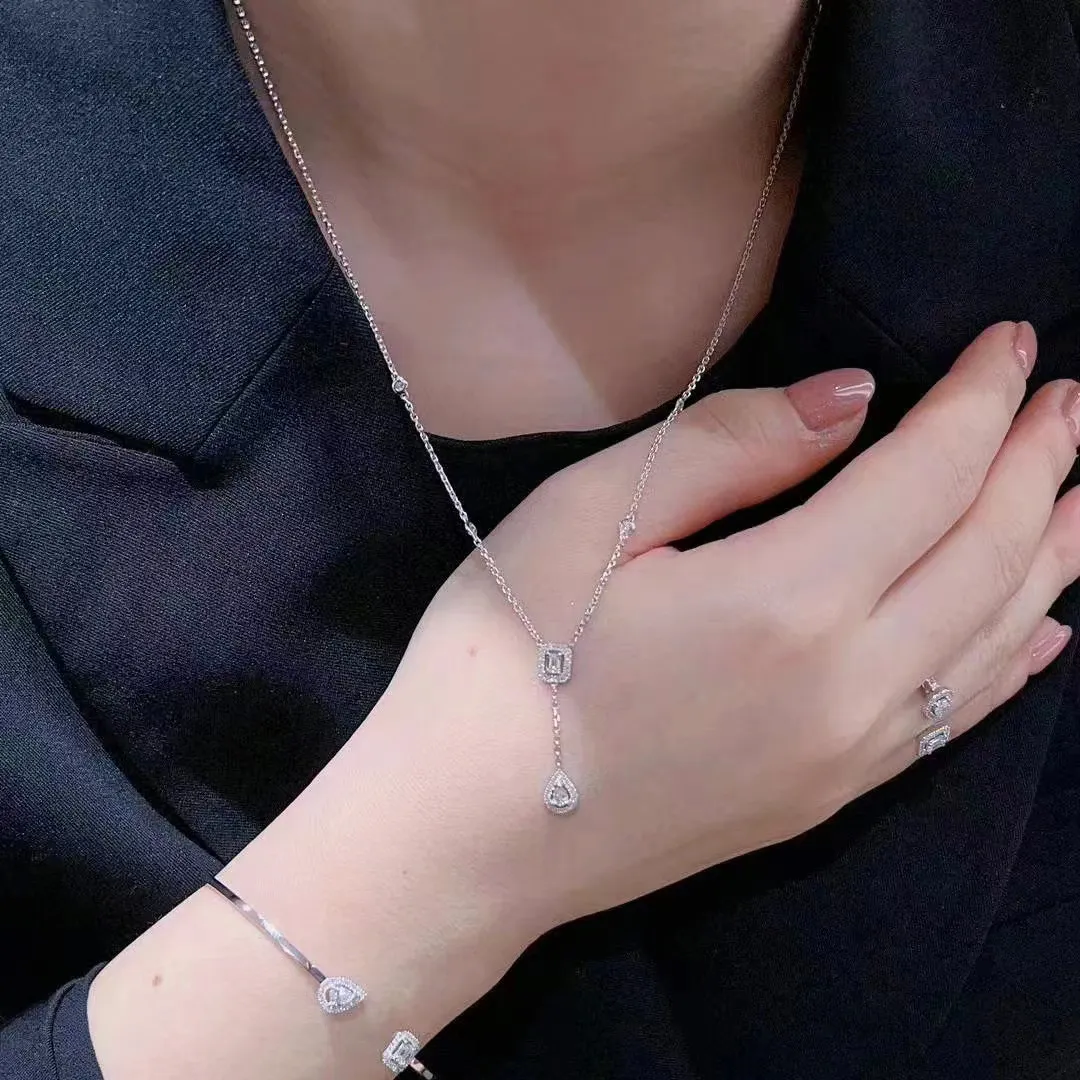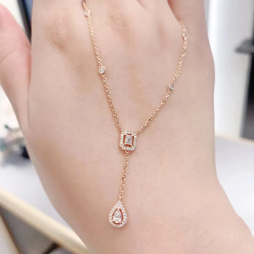 Rose Gold High Carbon Diamond Water Drop Rock Candy Necklace For Women