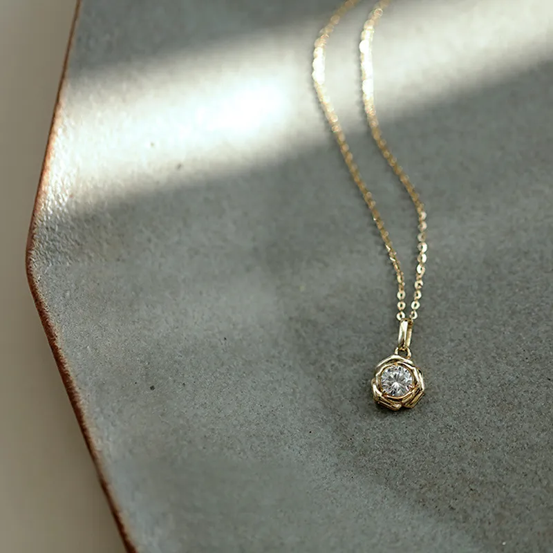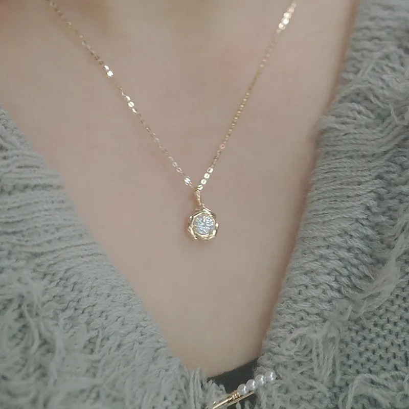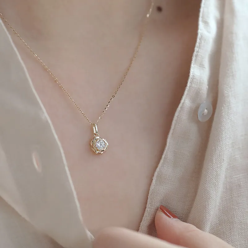 Rose Shaped Pendant With Glittering Flower Temperament