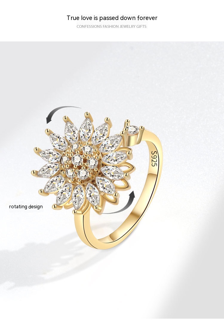 Rotatable S925 Sterling Silver Ring For Women