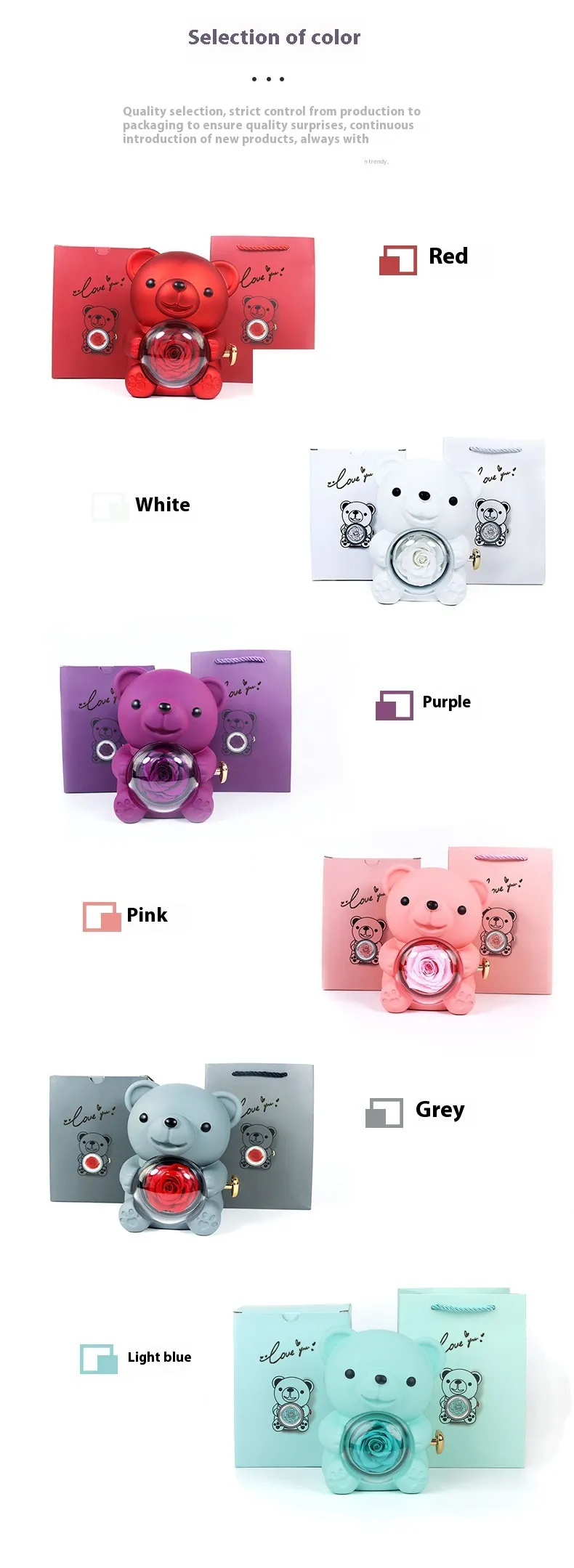 Surprise your loved ones with the enchanting Rotating Bear Gift Box Rose Jewelry Box, a beautifully designed gift box that combines whimsy and elegance. This unique box features a rotating bear figurine surrounded by a rose motif, making it an ideal presentation for jewelry and small treasures. Perfect for birthdays, anniversaries, or any moment that calls for a heartfelt gift, this jewelry box turns gift-giving into a magical experience.