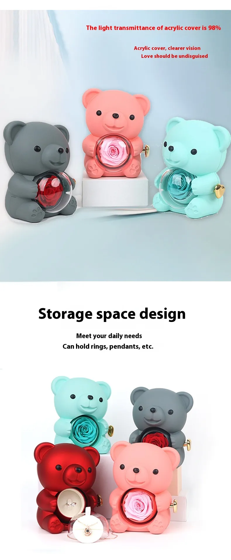 Rotating Bear Gift Box: Rose Jewelry Box for Special Occasions