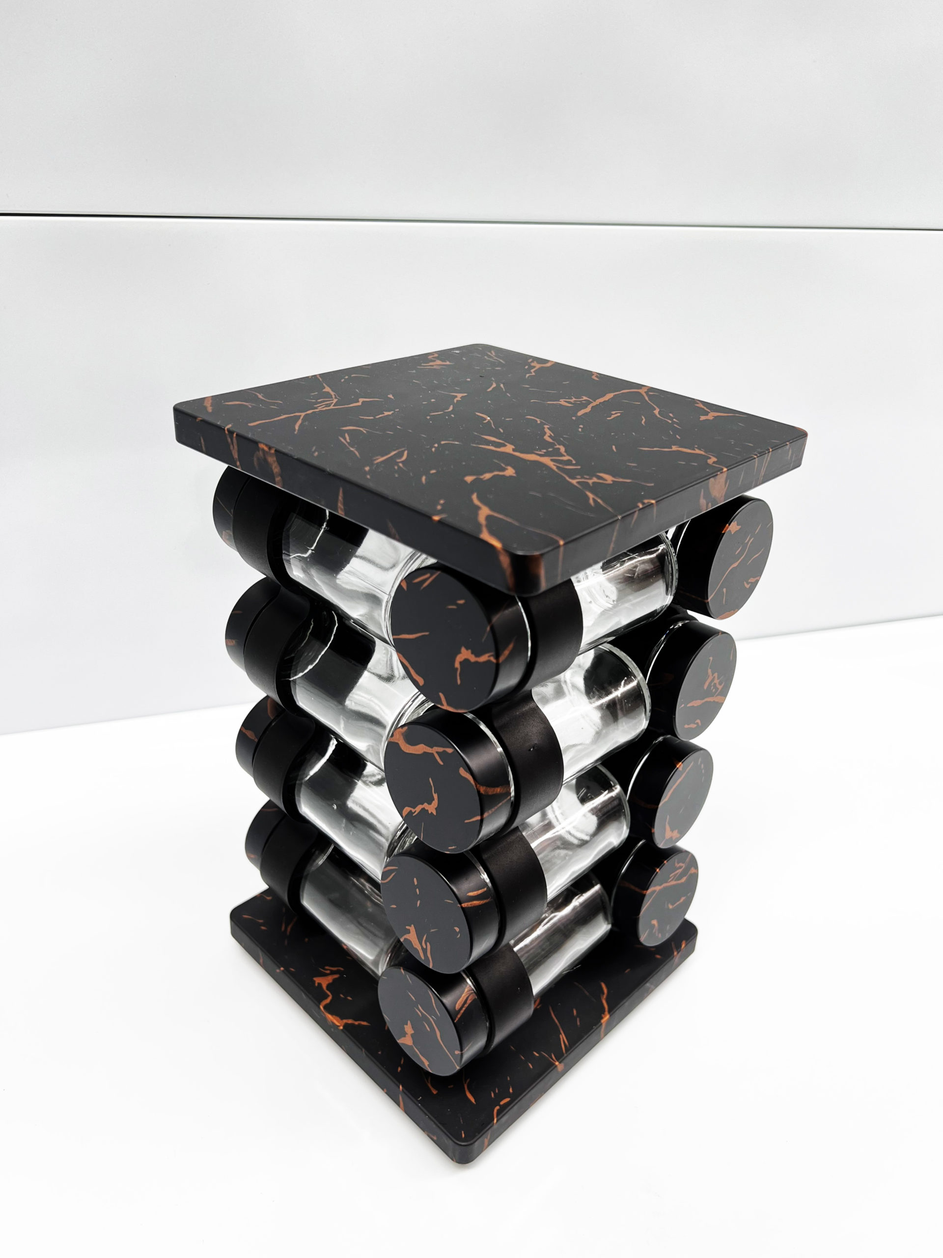 - With its sleek and contemporary design, the Rotating Spice Rack Carousel adds a touch of elegance to any kitchen. The compact size makes it perfect for countertops, keeping your spices organized without taking up too much space.