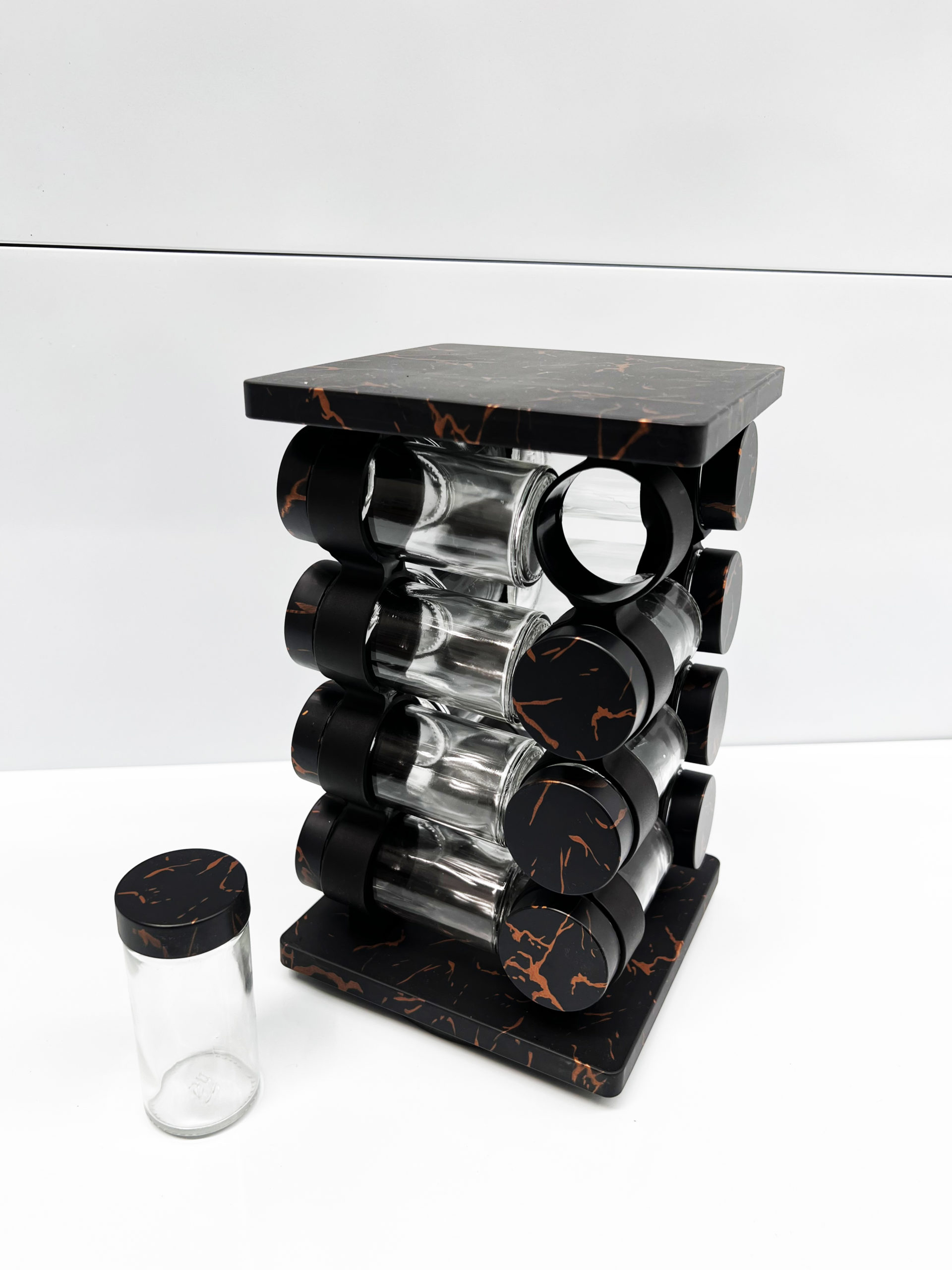 In conclusion, the Rotating Spice Rack Carousel with 16 Glass Jars is the perfect addition to any kitchen, offering a blend of style, convenience, and practicality. Its rotating design and compact size make it an ideal solution for keeping your spices organized and accessible, while the glass jars ensure that your seasonings remain fresh and flavorful.