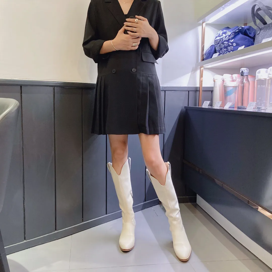 Layer with Dresses: The boots look great with dresses, whether short or long, providing an elevated yet comfortable option
