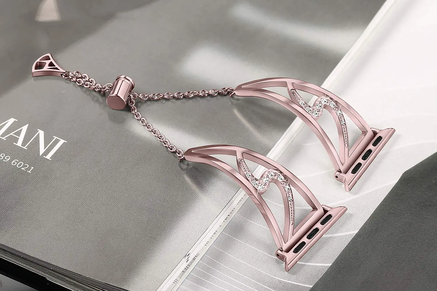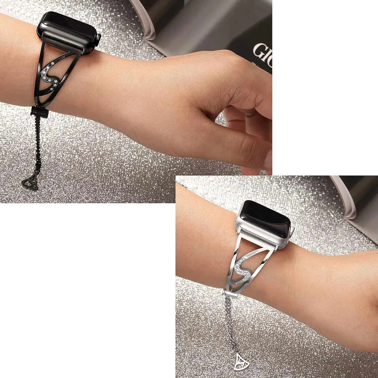 3.Elegant slim band set with rhinestones. Just enough bling to make it very fashionable. Makes your iwatch band look like a jewelry. A nice option to wear the apple watch with your dresses. Brings you lots of compliments
