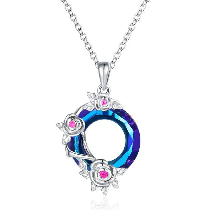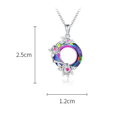S925 Colorful Crystal Rose Pendant Lucky Wheel Transfer Item Jewelry