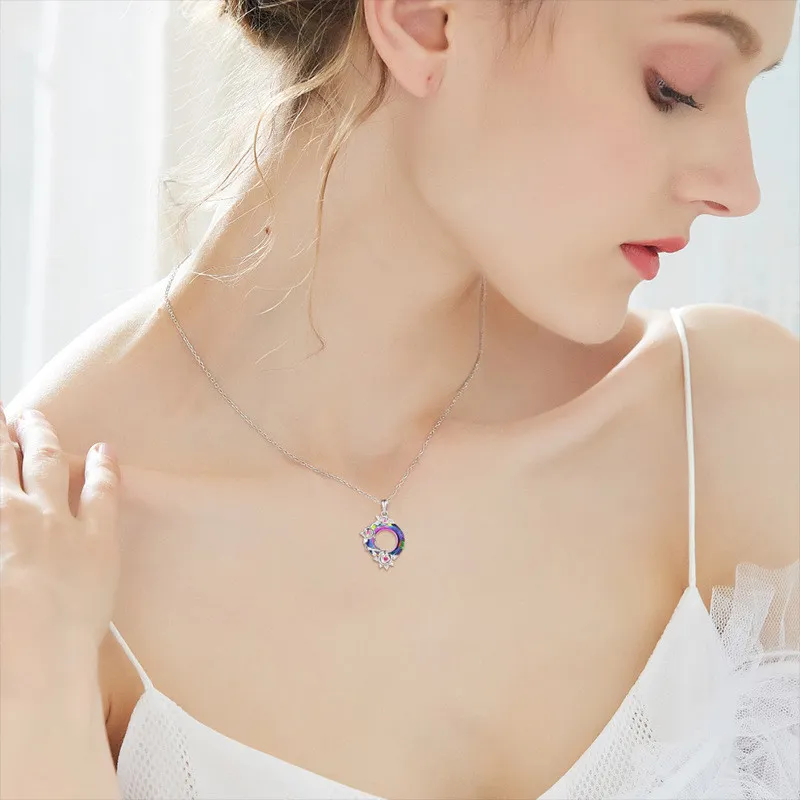 S925 Colorful Crystal Rose Pendant Lucky Wheel Transfer Item Jewelry
