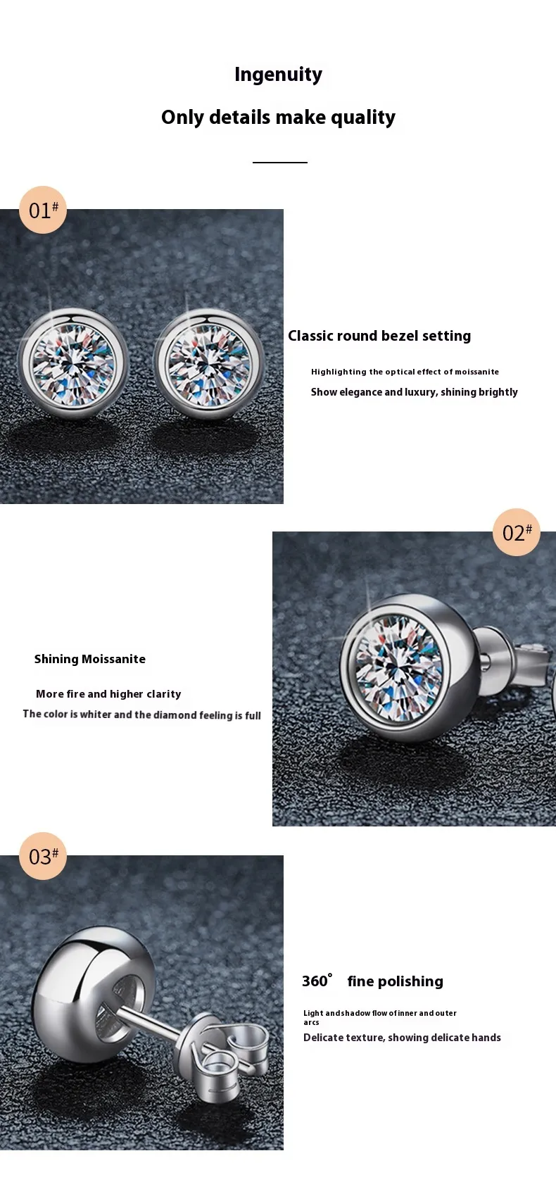 S925 Sterling Silver Classic Bubble Round Beads Moissanite Earrings
