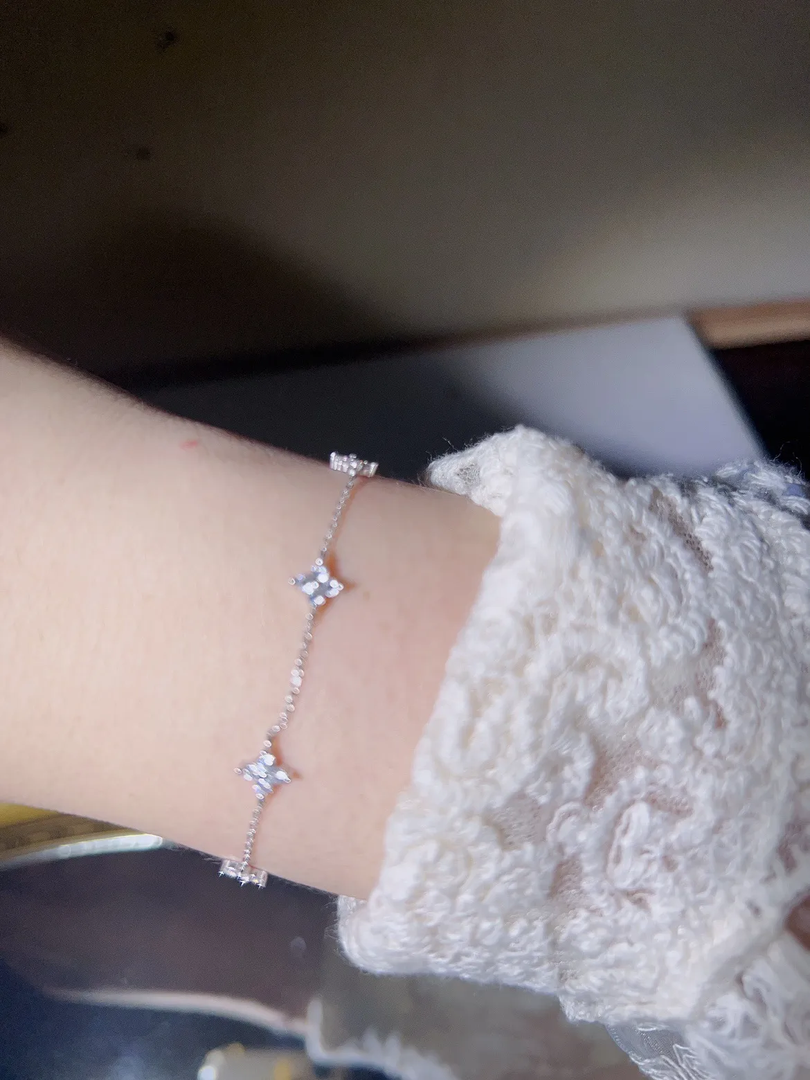 S925 Sterling Silver Clover Bracelet Female Simple Zircon