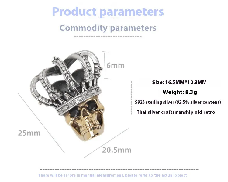 Whether you wear it as a personal statement piece or gift it to someone special, the S925 Sterling Silver Crown Skull Pendant is a striking addition to any jewelry collection. Embrace your individuality and let this pendant reflect your unique style and attitude.