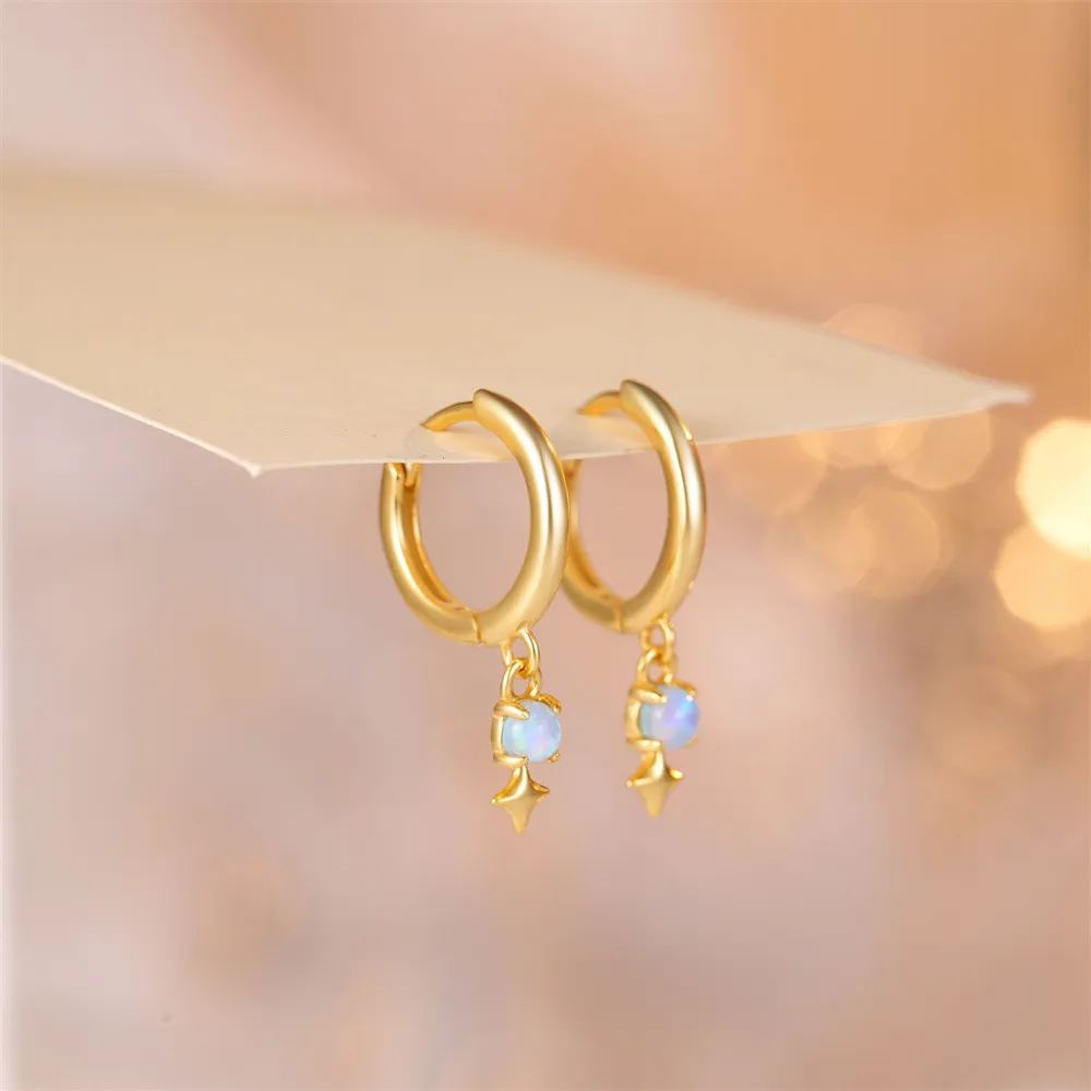 S925 Sterling Silver Diamond Embedded Star Opal Ear Clip