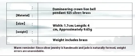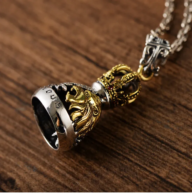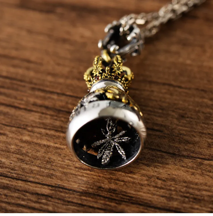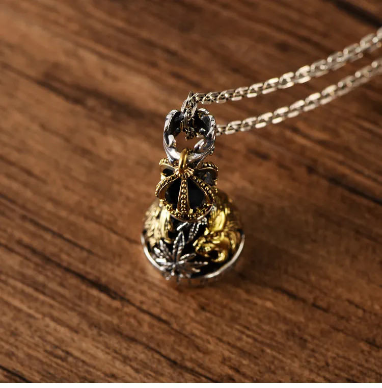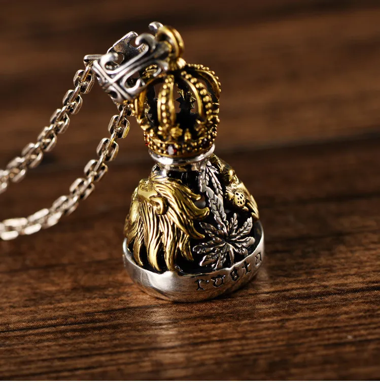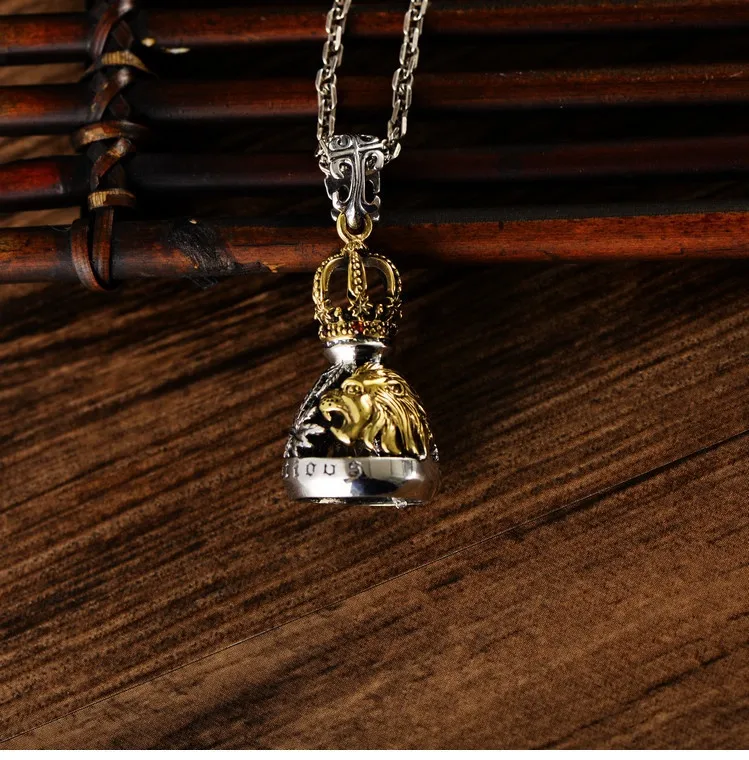 S925 Sterling Silver European And American Domineering Crown Lion Maple Leaf Hollow Bell Trendy Men's Pendant