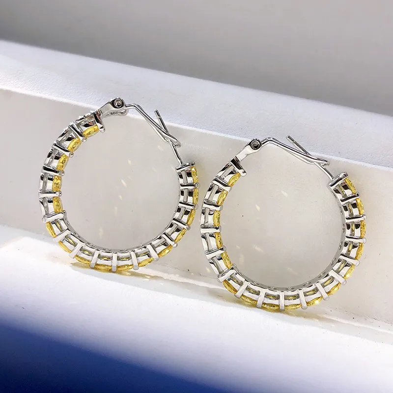 S925 Sterling Silver Inlaid 40 High Carbon Diamond Yellow Diamond Simple Ear Clip