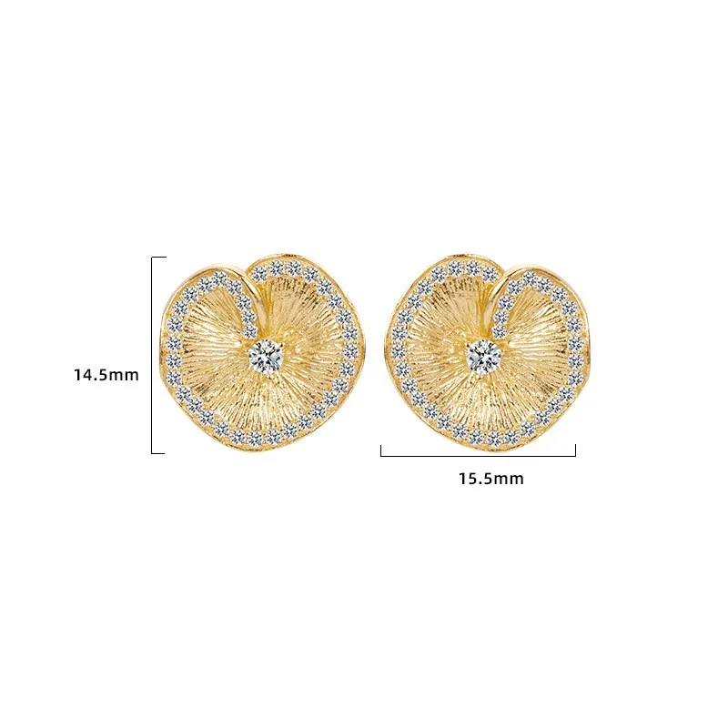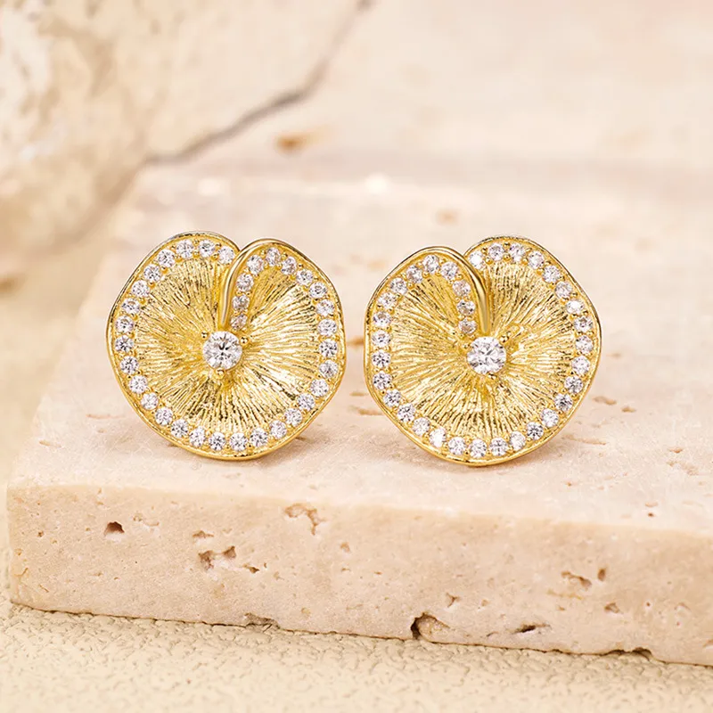S925 Sterling Silver Lotus Leaf Pleated Texture Ear Studs