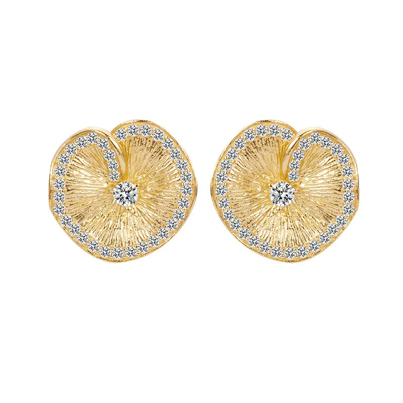 S925 Sterling Silver Lotus Leaf Pleated Texture Ear Studs