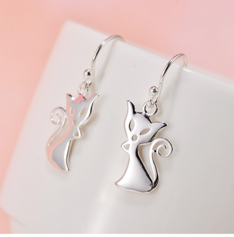 S925 Sterling Silver Simple And Stylish Personality Small Animal Cat Earrings