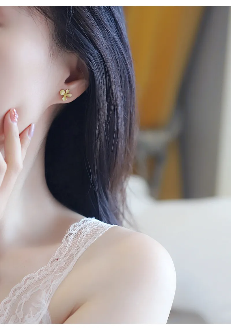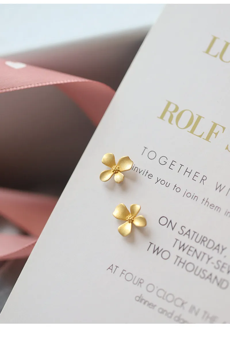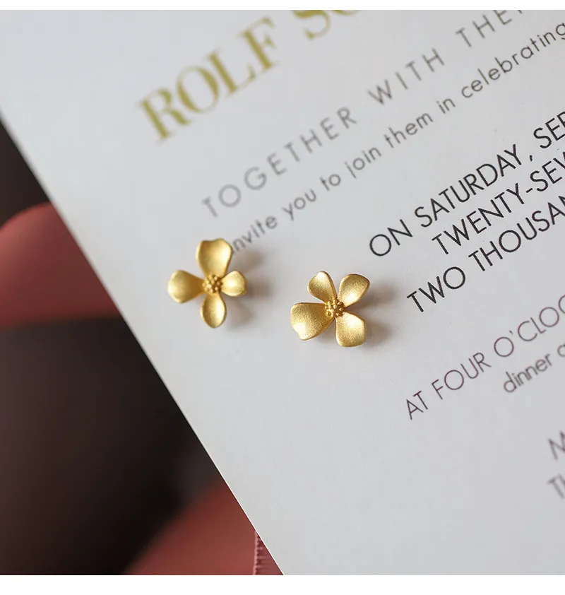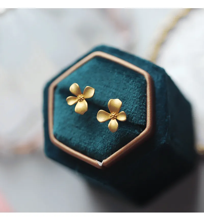 S999 Sterling Silver Gold Flower Stud Earrings