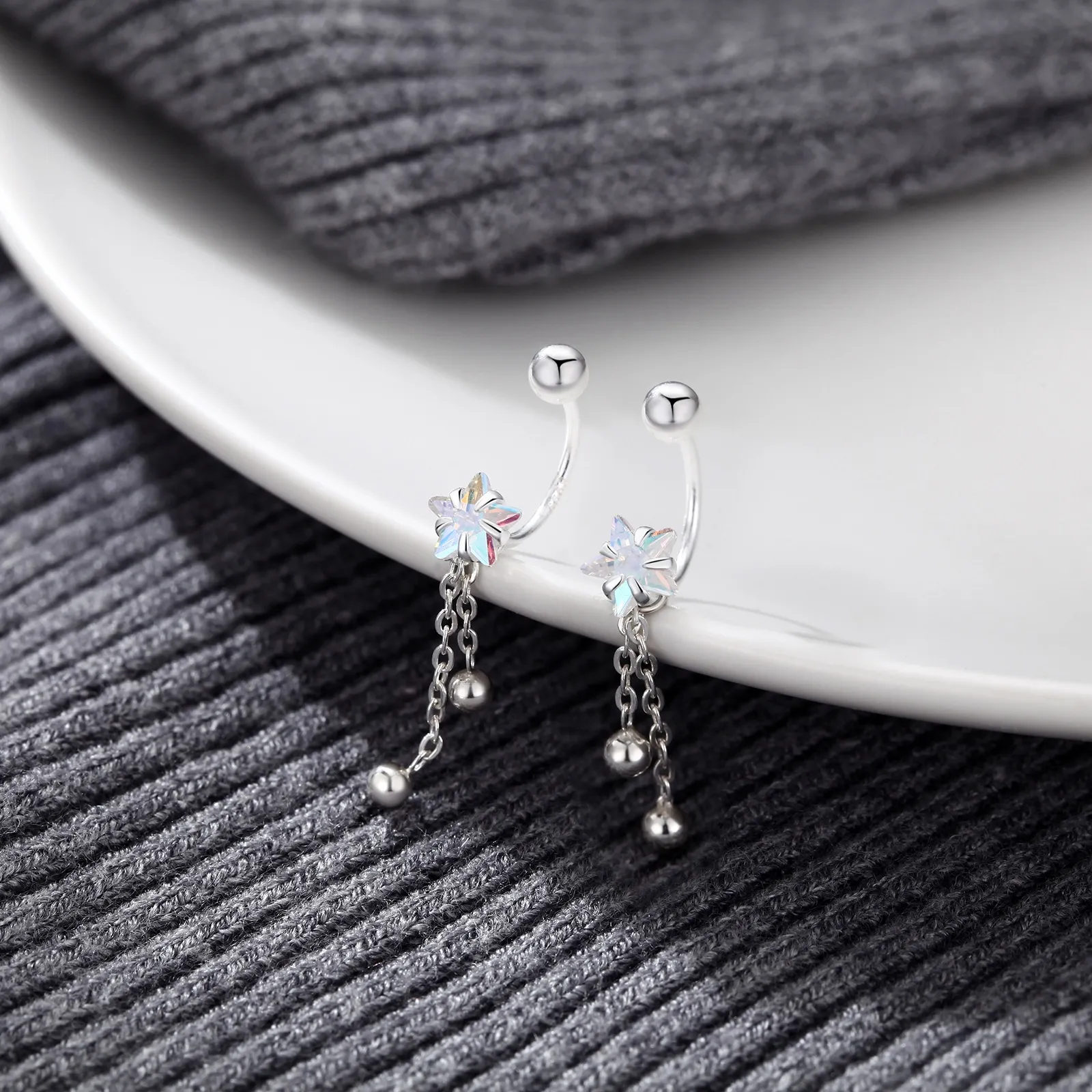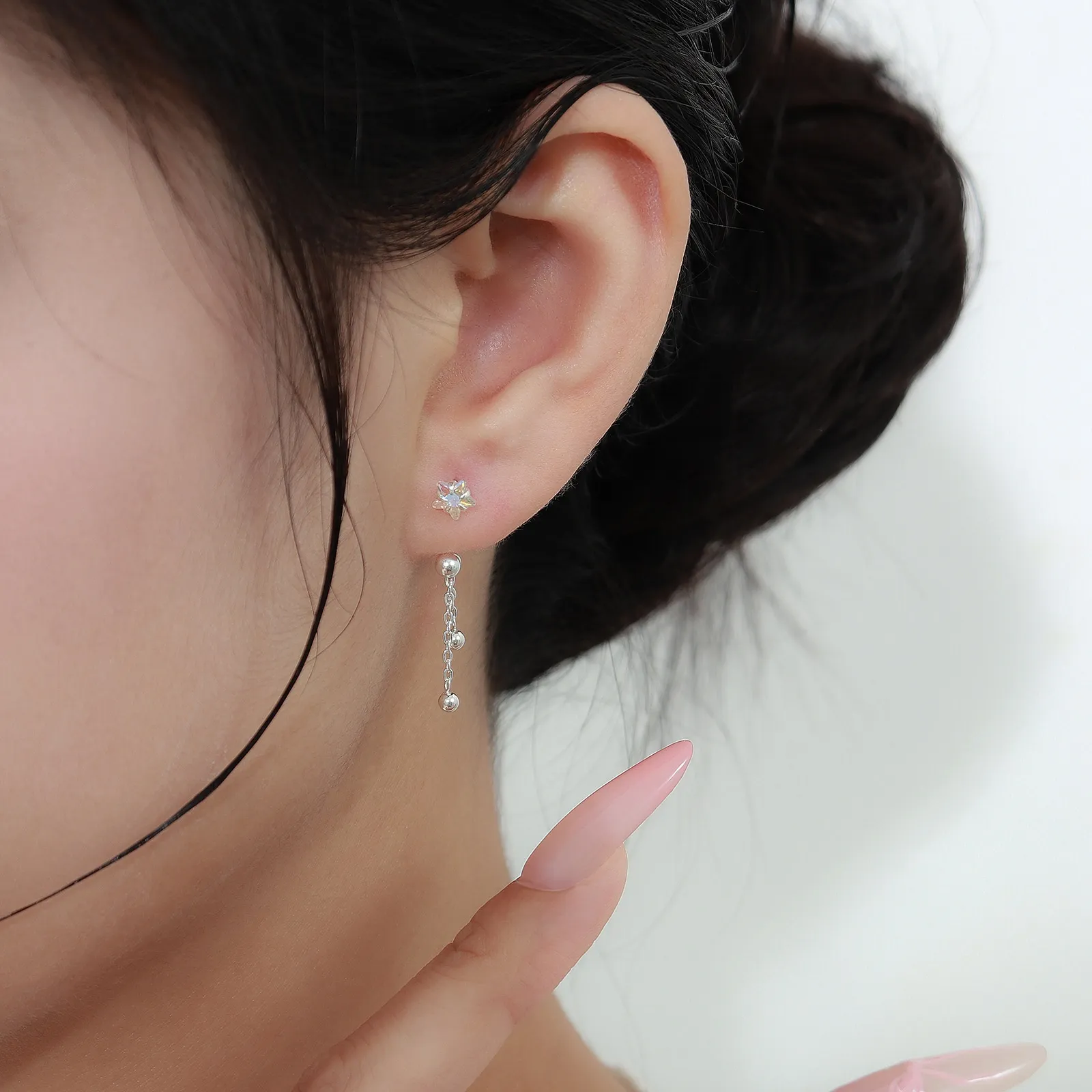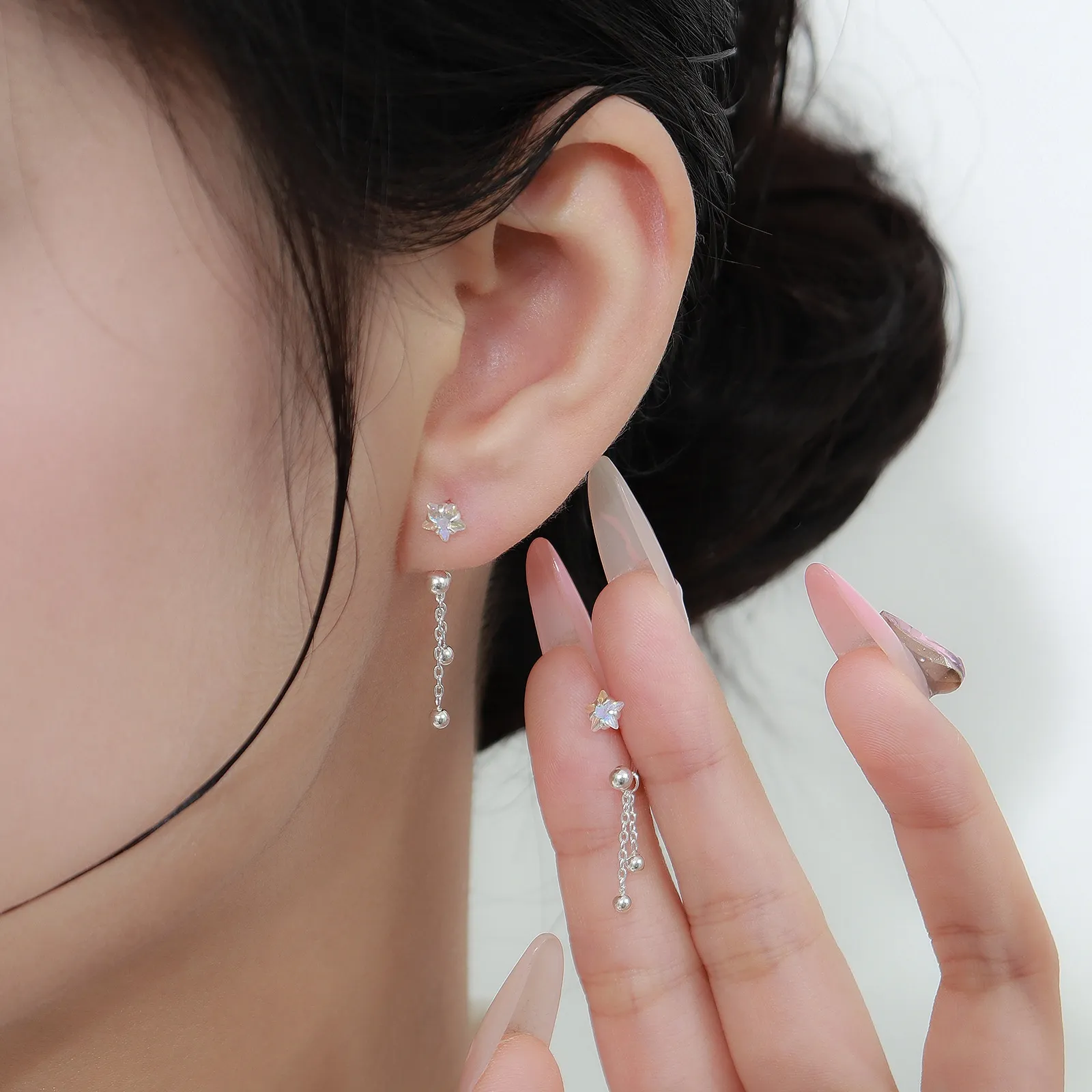 S999 Sterling Silver Screw Tightening Buckle XINGX Tassel Ear Bone Stud Earrings