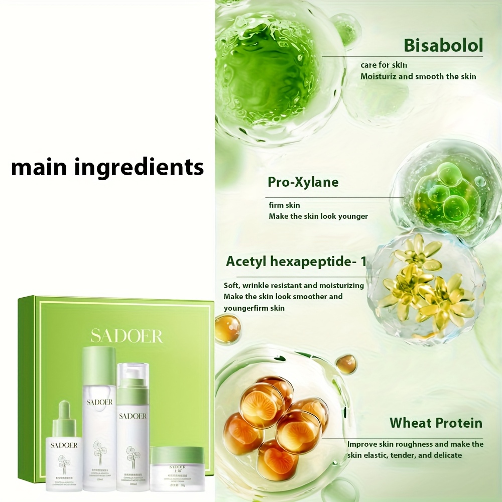 - Four-Piece Set: Includes a serum, toner, lotion, and cream, offering a complete skincare routine.