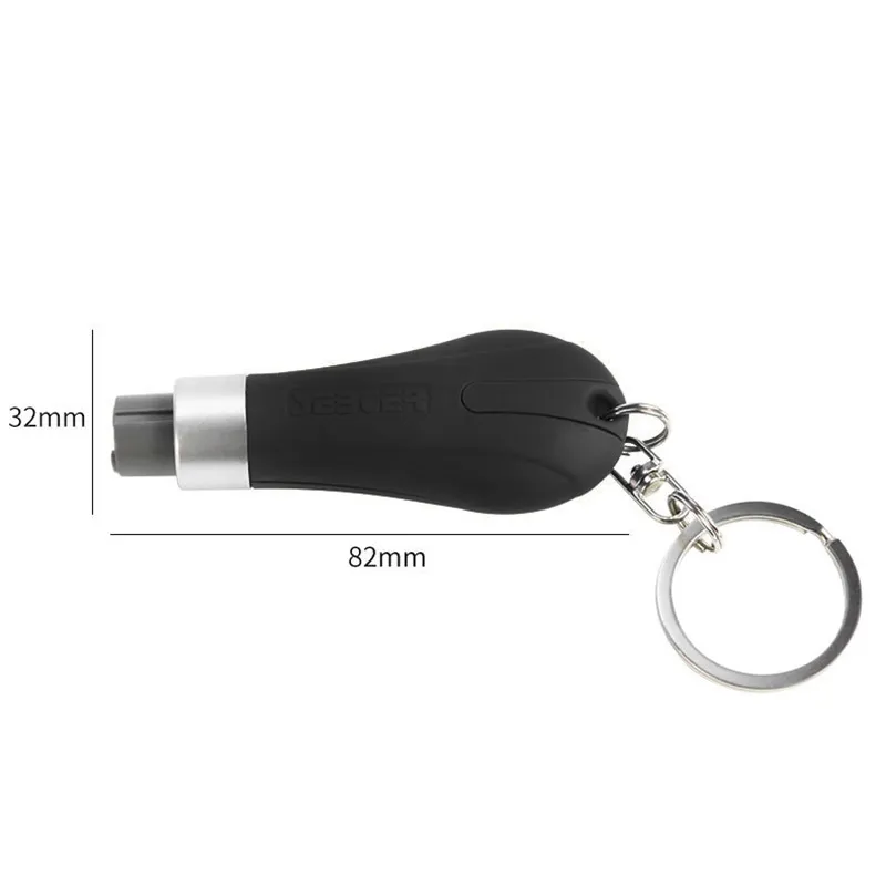 The mini safety hammer is light and compact. It also has a key ring. You can hang the mini safety hammer on the key ring, which is very easy