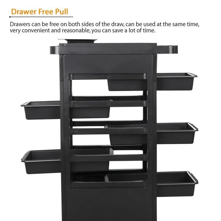 The interior layout and drawer placement of the Salon Trolley are thoughtfully designed to reduce bending, searching, and