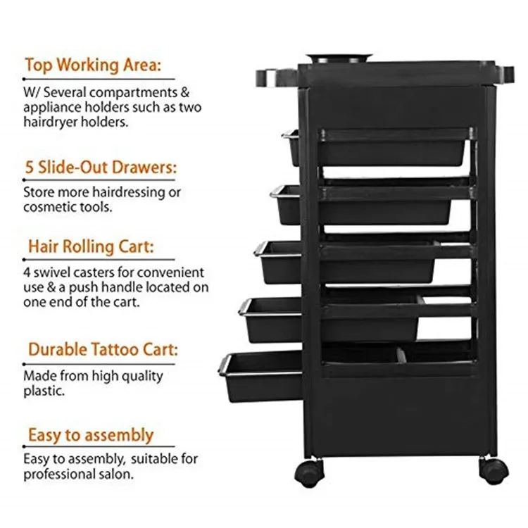 Available in a variety of finishes, colours, and configurations — from compact units for home use to full‑size, multi‑drawer versions for busy salon floors — the Salon Trolley adapts to different professional needs and space requirements. Many models also offer lockable drawers for secure storage of valuable tools, removable trays for easy cleaning, and accessory hooks or holders designed to keep frequently used items visible and handy.