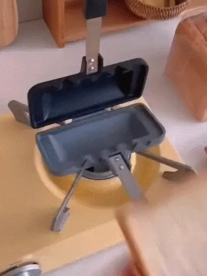 Two handles can be locked for cooking, the design of the pie iron stops the ingredients from falling out, unique corrugated edge ensure a firm crimp which making it handy to cook things that generally fall to pieces on a traditional skewer. Just Simply apply oil to the plate of this sandwich maker, place the bread, fill with your favorite ingredients, lock the handes and bake on the stove, the two-tone color design prevents wrong flipping when grilling.