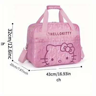 Sanrio Hello Kitty Large-Capacity Nylon Travel Bag Playful Pink Duffel with Durable Zipper Closure