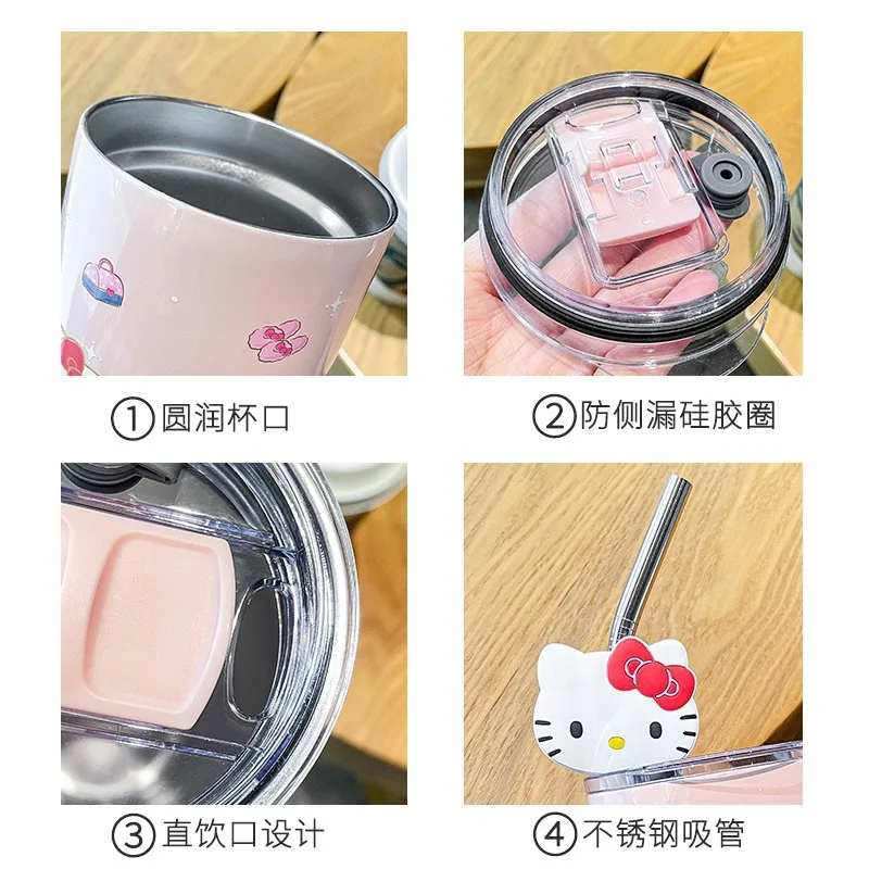 Sanrio Hello Kitty Straw Cup Cinnamoroll, Cute Cartoon Kuromi, Heat Preservation, Cold Insulation, Stainless Steel Water Cup, Perfect Gifts