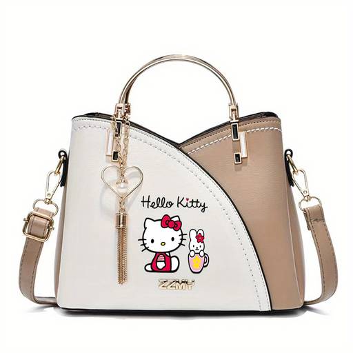 Sanrio Hello Kitty Womens Crossbody Bag / Handbag Official Licensed PU Purse with Adjustable Strap & Chain Accents Zipper Closure Elegant Anime-Inspired Style Mixed-Color Printing Perfect for Daily Use, Travel & Birthday Gifts