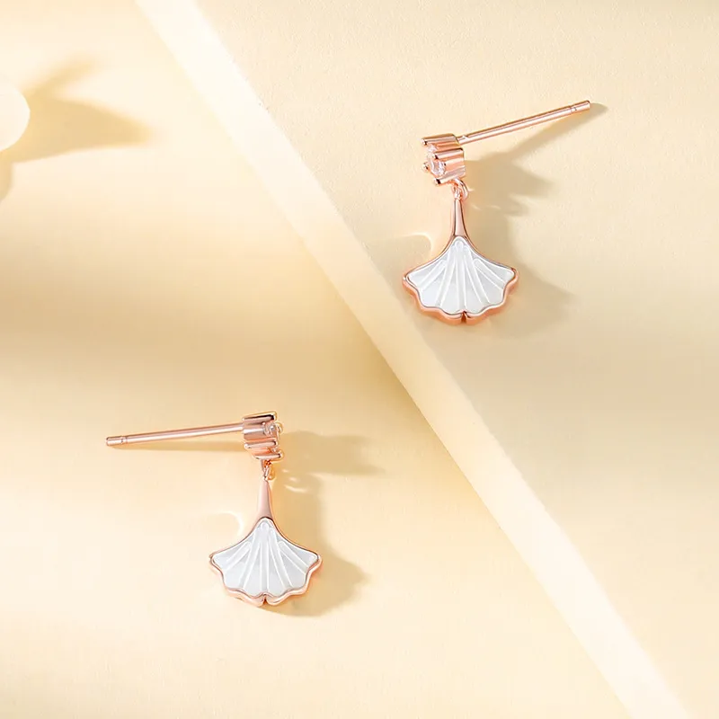 Sansheng Apricot Female Korean Style Design Net Red Small Skirt Rose Gold Fritillary Earrings