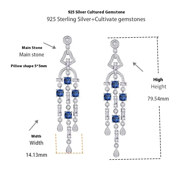 Sapphire 925 Silver Plated Ladies Tassel Eardrops
