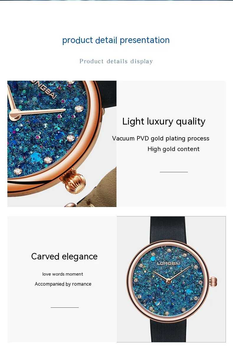 Perfect as a gift or a personal indulgence, the Sapphire Simple and Natural Small Diamond Women's Watch is a testament to understated luxury. Its timeless design suits all styles, making it a versatile addition to any jewelry collection. Whether you’re attending a formal event, a casual gathering, or enjoying a quiet day, this elegant watch enhances every moment. Embrace the beauty of simplicity and sparkle with this sophisticated timepiece, designed for women who appreciate elegance in every detail.
