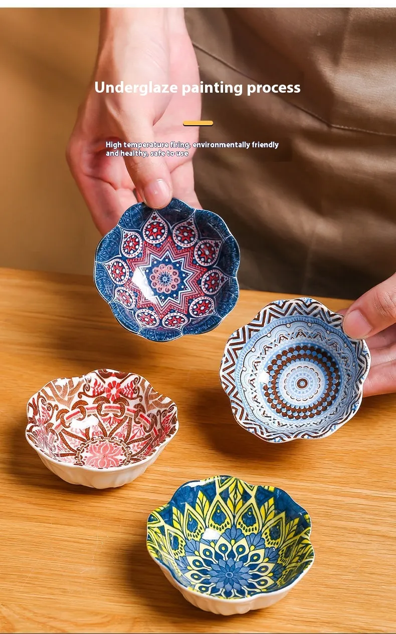 Color: Bohemian sauce dish-red, bohemian sauce dish light blue, bohemian sauce dish blue red, bohemian sauce dish Yellow Blue